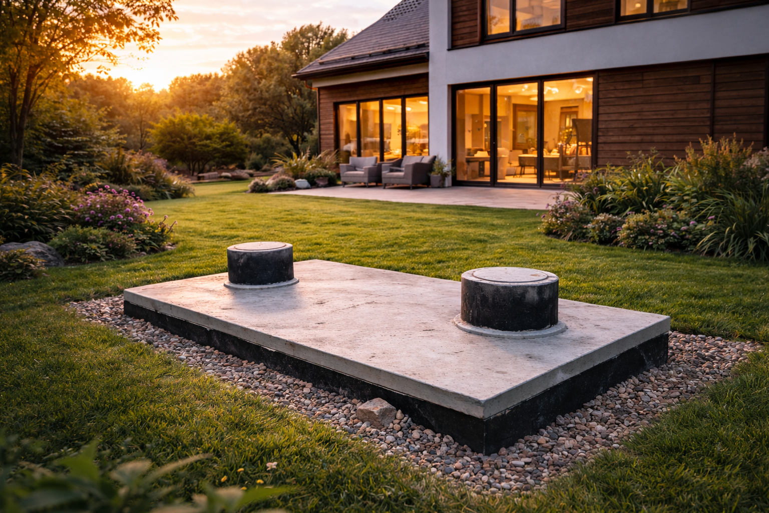 U nás nájdete septiky s veľkosťou od 7 do 14m3. Komplet, ktorý vám dodáme, obsahuje žumpu, štandardnú dosku s hrúbkou 120mm, dva komíny o výške 500mm a dva betónové poklopy. Pred osadením betónovej žumpy je potrebné vysypať spodok jamy štrkom alebo pieskom, a to cca 10 – 15cm.